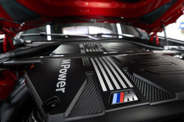 A new M-specific bracing package has been implemented at the front end of the SUVs, including a strut brace in the engine compartment joining the shock towers for greater stiffness. Come August of this year, meanwhile, a carbon fiber-reinforced plastic version will be offered optionally, giving the stiffness improvement but with lower curb weight.