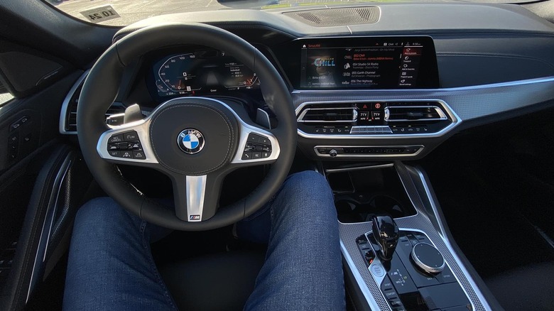In the new X6, the roofline is lower still, which means a sportier design and a more streamlined rear end, neither as bulbous nor as voluptuous as previous generations of the X6. The sloping shape also means less rear headroom along with a smaller cargo area, of course. That said, I didn't feel cramped when I sat in the back for a short stint as we drove to BMW's performance driving school for their annual test fest.
