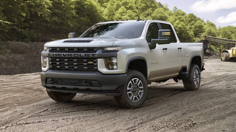 Inside, there's a new infotainment system with Apple CarPlay and Android Auto support. Menus in that system also integrate with compatible trailers. There's also auto park brake assist and park grade hold assist, for keeping the Silverado HD in place for extended periods. Hill Start Assist and Hill Descent Control are available, along with power steering that can adjust according to what you're pulling and other road factors.