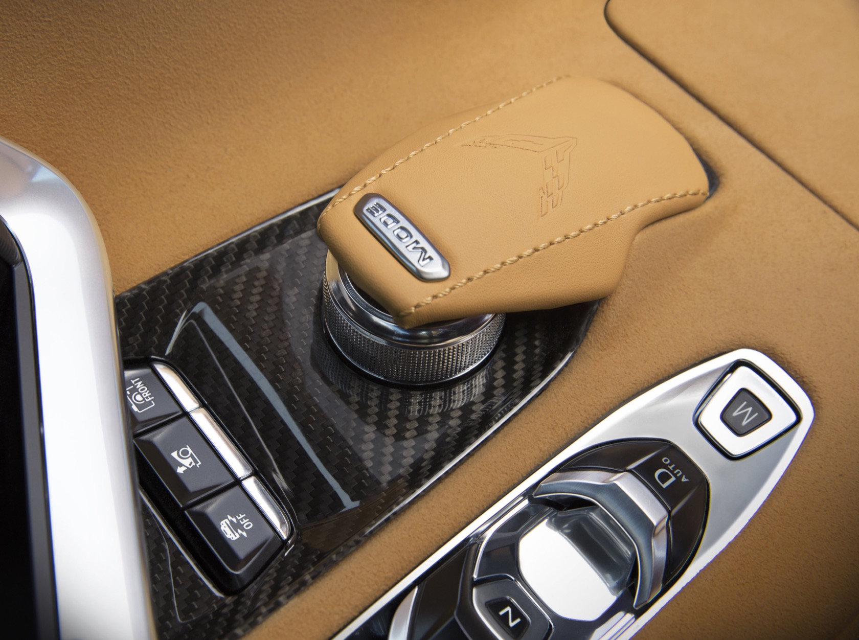Metal paddle-shifters allow you to take control yourself, and you can even hold them both in to de-clutch the transmission altogether. Even in auto mode, though, Chevrolet seems confident you won't miss the stick. Its shifting algorithms promise to automatically react to more aggressive driving, doing things like avoiding upshifts when you're pushing the Corvette hard.