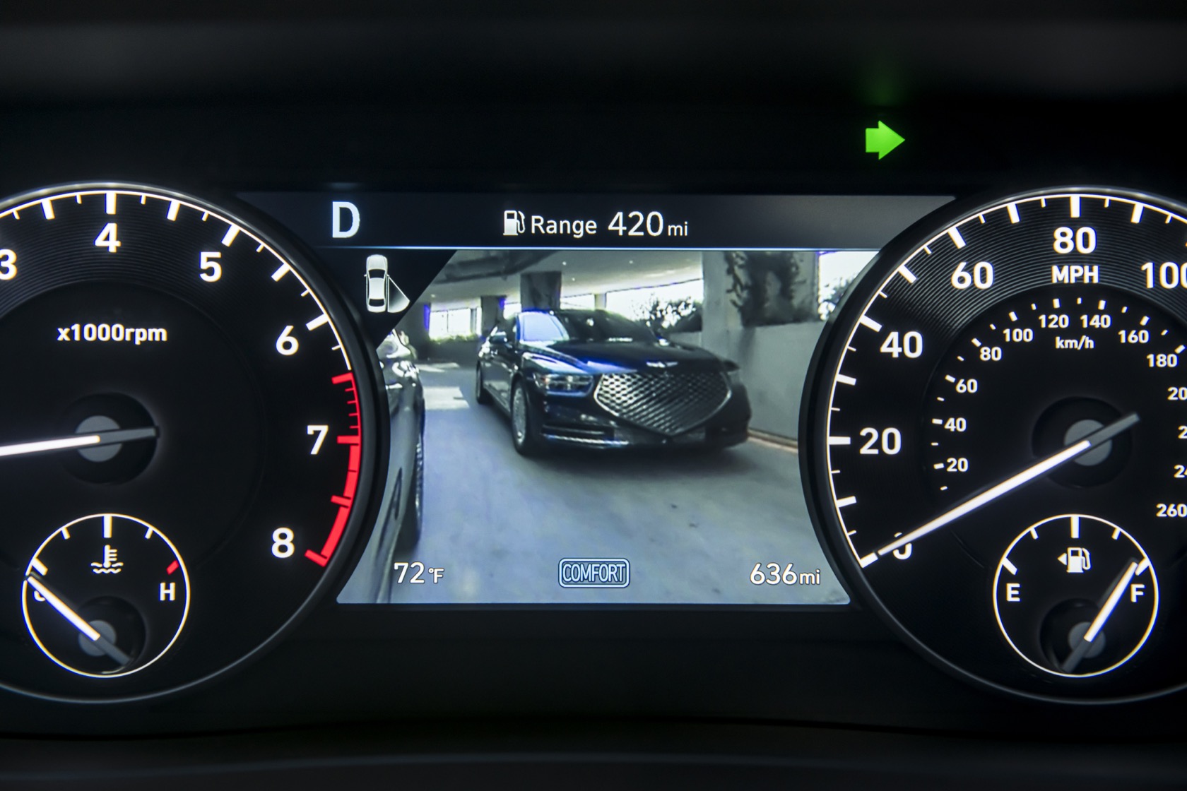Really, though, with either engine the 2020 G90 makes a strong case as the perfect road-trip car. It's astonishingly quiet, and the unruffled ride across LA's hardly-exemplary asphalt is a testament to how well Genesis' engineers got the suspension and damping right. The active safety tech has been heaped on, too, with standard blind-spot warnings, a camera feed from the side of the car as you change lanes, front collision avoidance and rear cross traffic avoidance, a 360-degree camera, driver attention warnings, and safe exit assist to warn you if you're about to throw open the door into traffic.