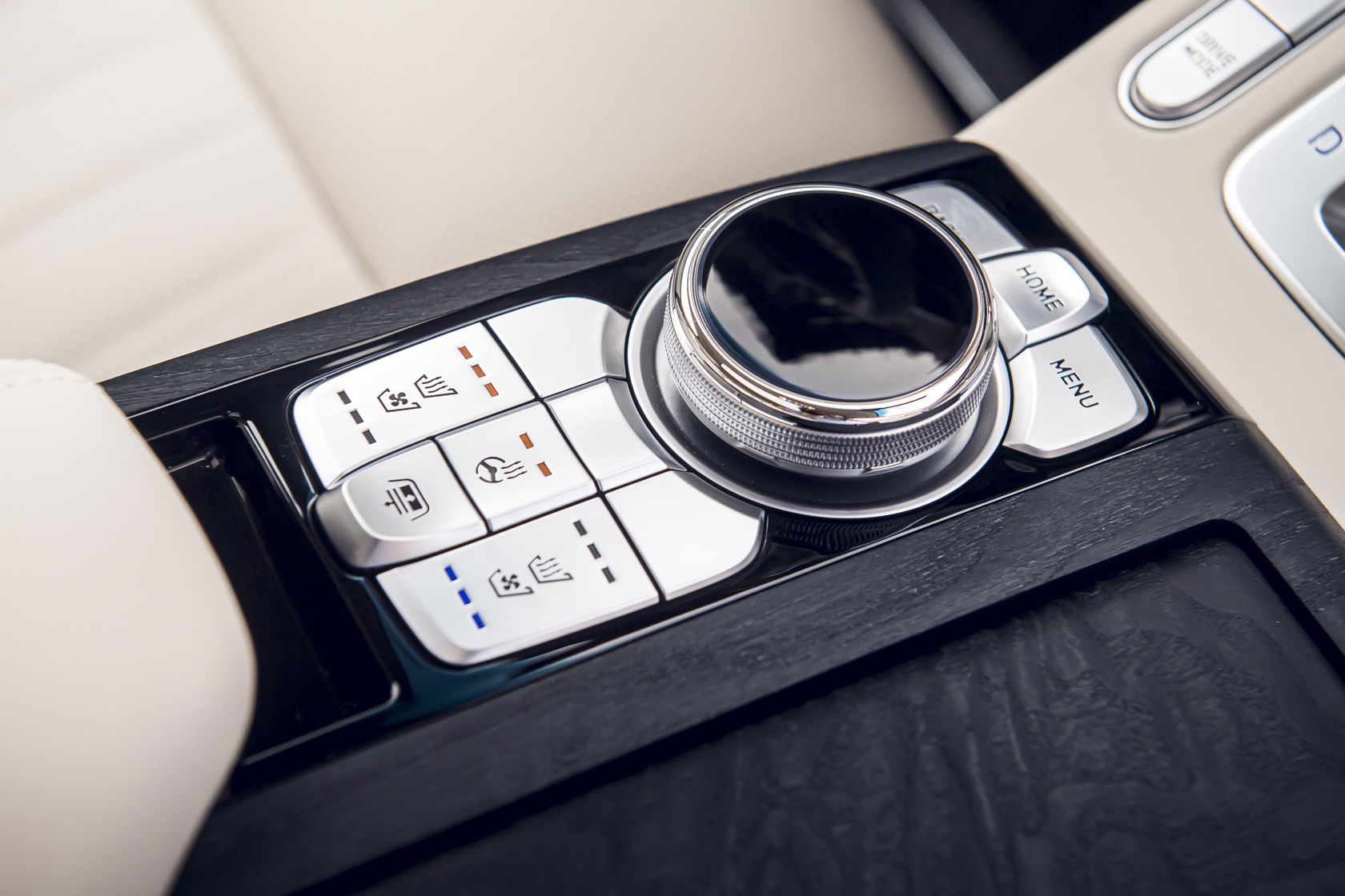 If you're riding in the back, you probably want the Ultimate trim. That's when you get two power-adjustable thrones – 14-way on the right, and 12-way on the left – and ventilation to go with the standard heating. Each person gets a 10.3-inch HD display, too, and there are dedicated controls to adjust the HVAC and infotainment. If there's one thing the G90 isn't short on, it's buttons; the cabin is chock-full of them.