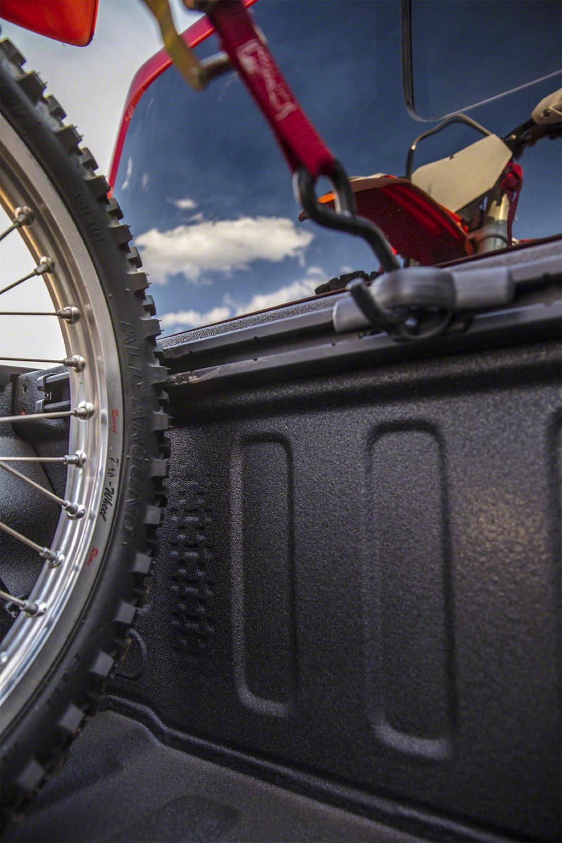 Under-rail bed lighting and integrated tie-downs are also to be found in the bed, and there's an optional power system that adds a 400W, 115 volt three-prong outlet. A Trail Rail Cargo Management System is also available. Jeep hides the Gladiator's full-sized spare tire and mount under the bed.