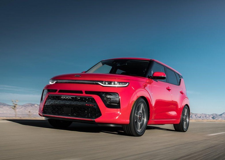 Kia will offer the regular 2020 Soul with a choice of two gas engines. Standard will be a 2.0-liter Nu four-cylinder, delivering 147 horsepower and 132 lb-ft of torque. It'll be paired with either a six-speed manual transmission or Kia's IVT, its own version of a CVT.