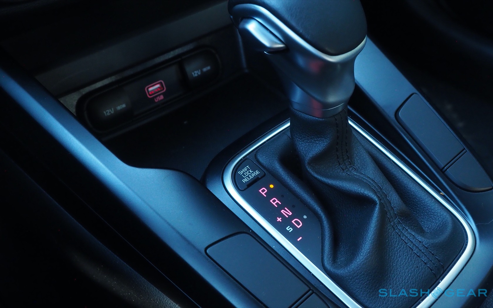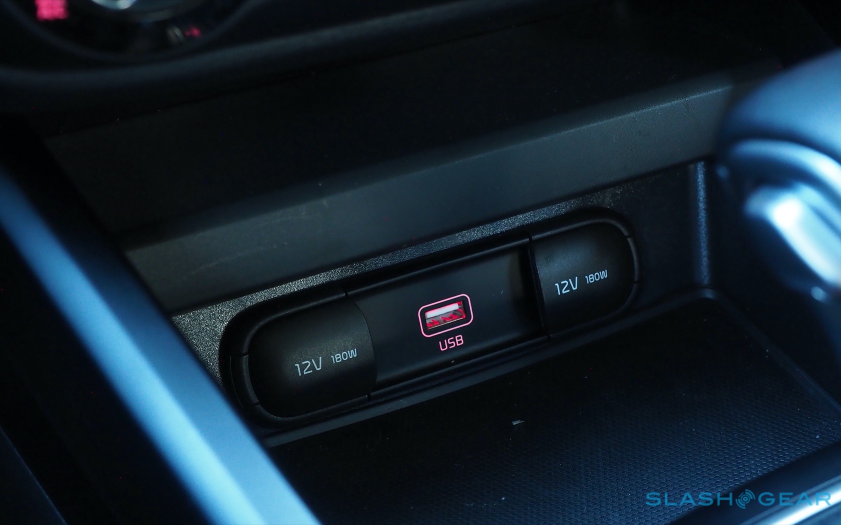 Cabin accommodations trend toward the plasticky, but Kia throws in some shiny stuff to at least make it visually interesting. More importantly it doesn't feel brittle, and the switchgear won't leave you fearful it'll snap off in your hand. There are plenty of nooks and crannies for your phone, sunglasses, and everything else, and you get not only a USB Type-A port – handily illuminated – but two 12V 180W power outlets.