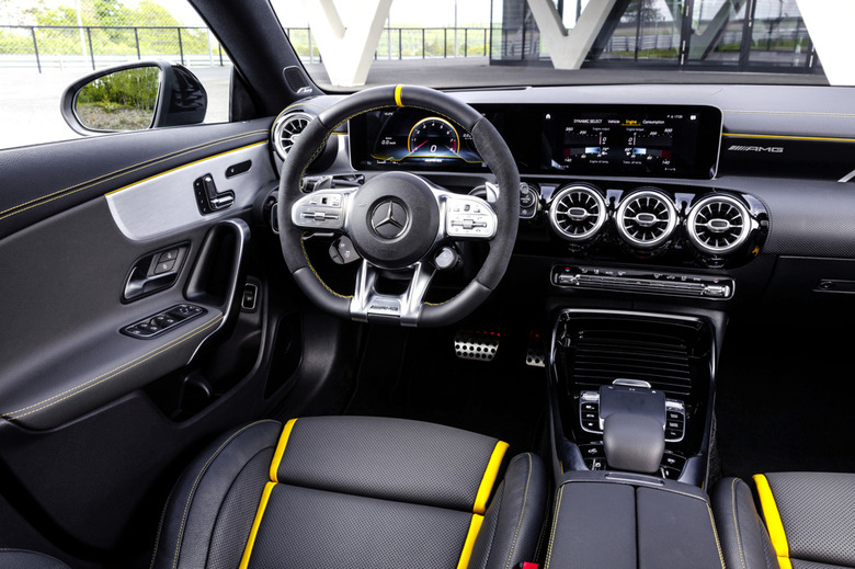 Mercedes-AMG saves the real monster for Europe, however. The images you see here are of the Euro-spec CLA 45 S, tuned even further for 416 hp. That, sadly, isn't coming stateside; still, what's on offer for those in the market should be more than sufficient, the M139 paired with an equally-fresh eight-speed dual-clutch automatic transmission with paddle shifters. 4MATIC+ fully variable all-wheel drive with AMG torque control helps get you from zero to 60 in 4-seconds flat with launch control.