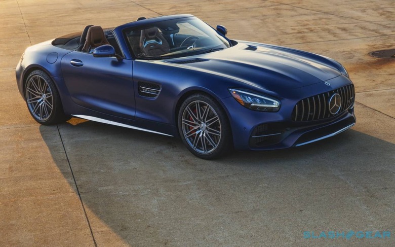 That, it's worth noting, puts you within $10k's distance of the AMG GT R Roadster. Tuned for 577 hp and 516 lb-ft, the flagship drop-top trims its 0-60 time to 3.5 seconds and takes more inspiration from its race car cousins. It also has a more extreme styling package, including a sizable fixed rear spoiler.