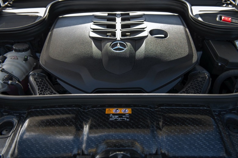 What's really special is the integration of Mercedes' EQ Boost mild-hybrid system on both engines. As we saw in the Mercedes-AMG CLS 53 Coupe, EQ Boost consists of a small electric motor nestled between the engine and transmission and a small battery pack. The former also functions as an integrated starter-generator. The system outputs an additional 21 horsepower and 184 pound-feet of torque over short periods. The EQ Boost system also generates power for the onboard 48-volt electrical system, which in turn powers the air-con compressor and water pump to reduce engine load.