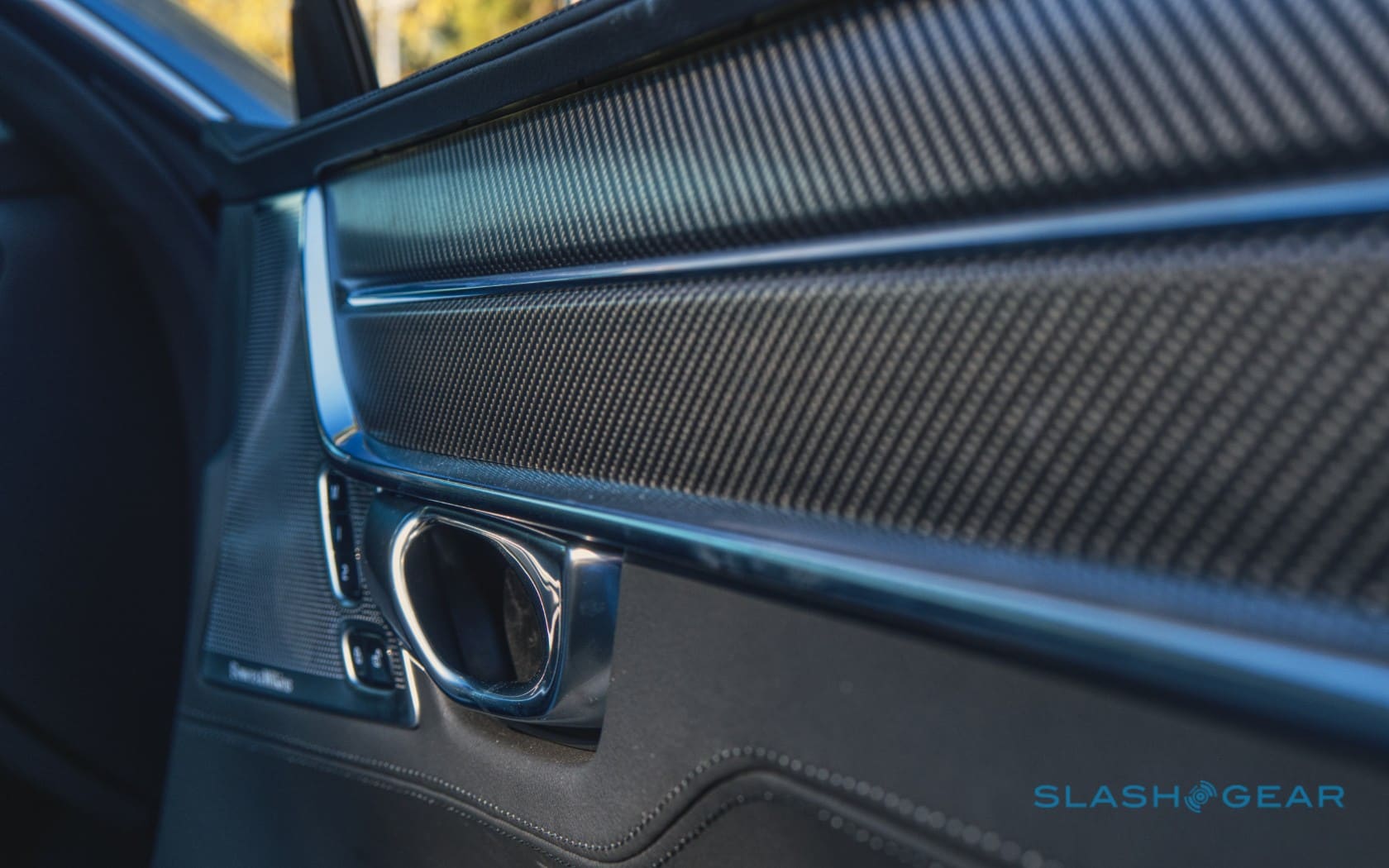 The similarities are no bad thing, on the face of it. Volvo's interiors are some of the nicest around right now, so I'm not going to complain too loudly. Still, the plastic airbag cover that feels acceptable on a $40k Volvo crossover seems a little less excusable on a $155k luxury coupe, and while I appreciate Polestar wanting to highlight its materials expertise with real CFRP panels on the dash and doors, I'm not sure it quite works. Carbon fiber reinforced polymer may be marvelous when it comes to its weight-strength balance, but it just doesn't feel all that great under your fingertips.