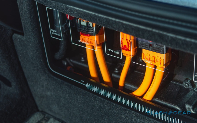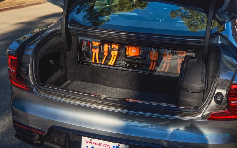 Don't get me wrong, the Polestar 1's cabin is fine. There's a sweet-sounding Bowers & Wilkins audio system that comes as standard, an Orrefors crystal gear shift knob, and high-quality perforated leather in a choice of two finishes. It just doesn't feel all that special. I wish the designers hadn't saved the most charming interior feature for the trunk, where the high-voltage power connectors are visible through a plexiglass panel. The bright orange cables are intended as an eye-catching reminder of the battery's presence, the reason you only get a mere 4.41 cubic feet of cargo space.