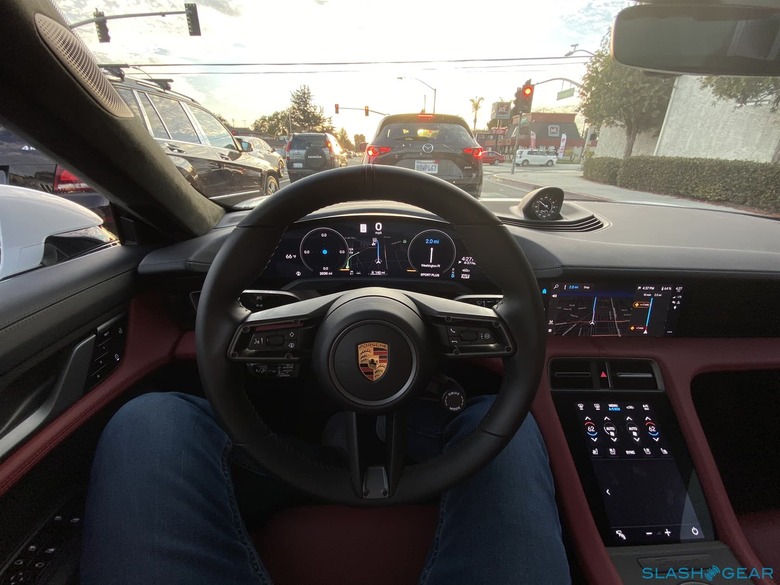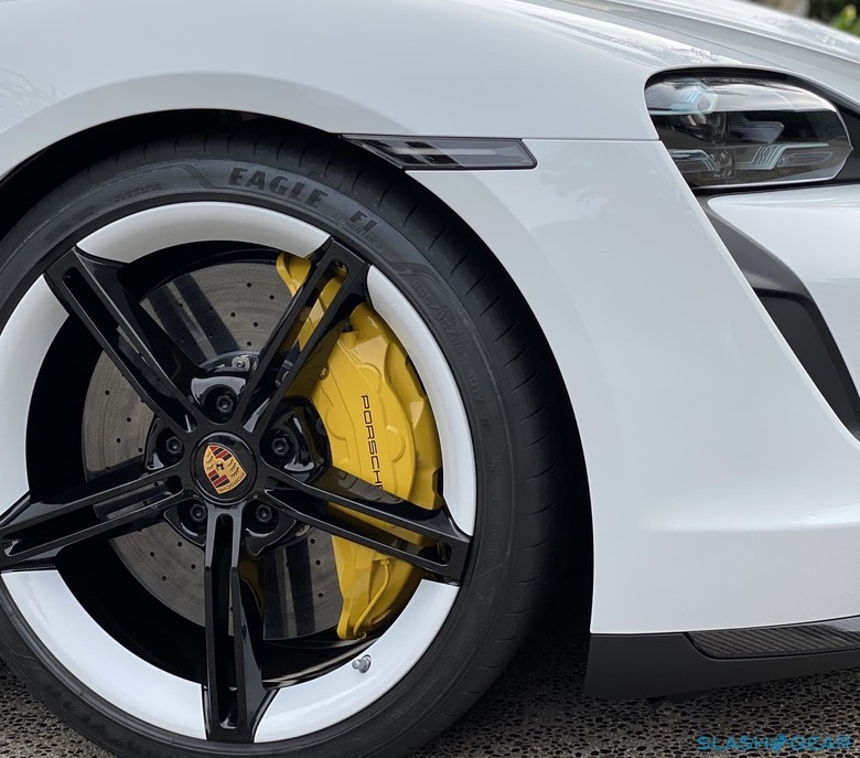 The steering is precise and thankfully brimming with feel, although initial feedback could use some tinkering to keep it on par with the 911. The brakes are large and glorious when peering through those gorgeous alloys, as they should be for such a beastly car. It took me a minute to get to terms with the brake pedal feel in the Taycan, and I don't want to blame the regenerative braking system for that. True, the system can harvest up to 265 kW of energy to feed back into the battery pack, but you'll need to be entirely familiar with the brake pedal modulation to catch up with a Tesla Model S on a winding mountain road. In normal driving, though, you'll be engaging the regenerative brakes for almost 90-percent of the time, which also means the brake pads in a Taycan can last for a long, long while.