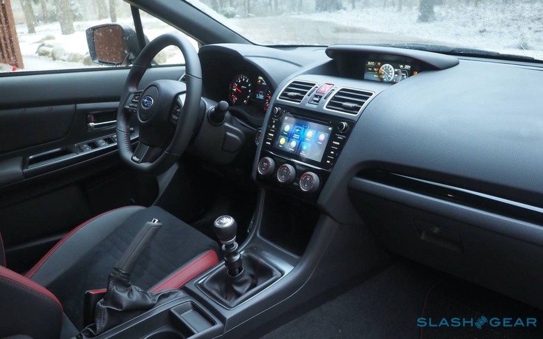 There are the usual WRX foibles (to put it generously). Cabin quality and design feel a little last-generation, with plenty of hard plastics, and it's hardly a quiet car: road noise and wind noise are more noticeable than you'd expect. The ultrasuede-trimmed Recaro seats are pleasant, and there's lots of space in the cabin and trunk, but even with the red accents the interior feels dark. The fact that the standard Performance Package deletes the sunroof among its changes doesn't help there.