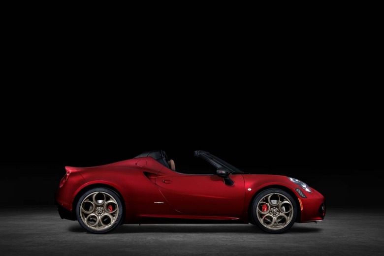 Alfa's newest 4C Spider 33 Stradale Tributo is handcrafted in Modena, Italy, and is brimming with retro styling cues. It starts with a red-transparent carbon-fiber monocoque chassis – the first for 4C Spider – and a plethora of commemorative plaques and badging.