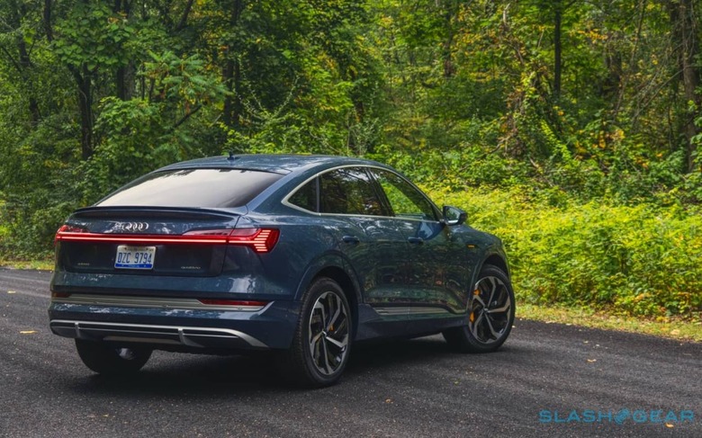 On the road, there's a slight compromise in ride made for style: the standard e-tron Sportback gets 20-inch wheels, rather than the e-tron SUV's 19-inch, while the $4,100 Edition One package upgrades that to 21-inches. Adaptive air suspension is standard, though, which goes a long way; in Comfort mode, the EV is as plush as an A8.
