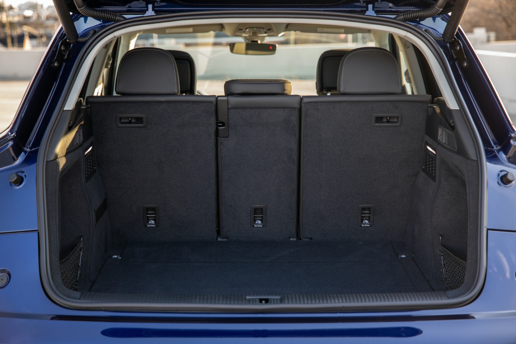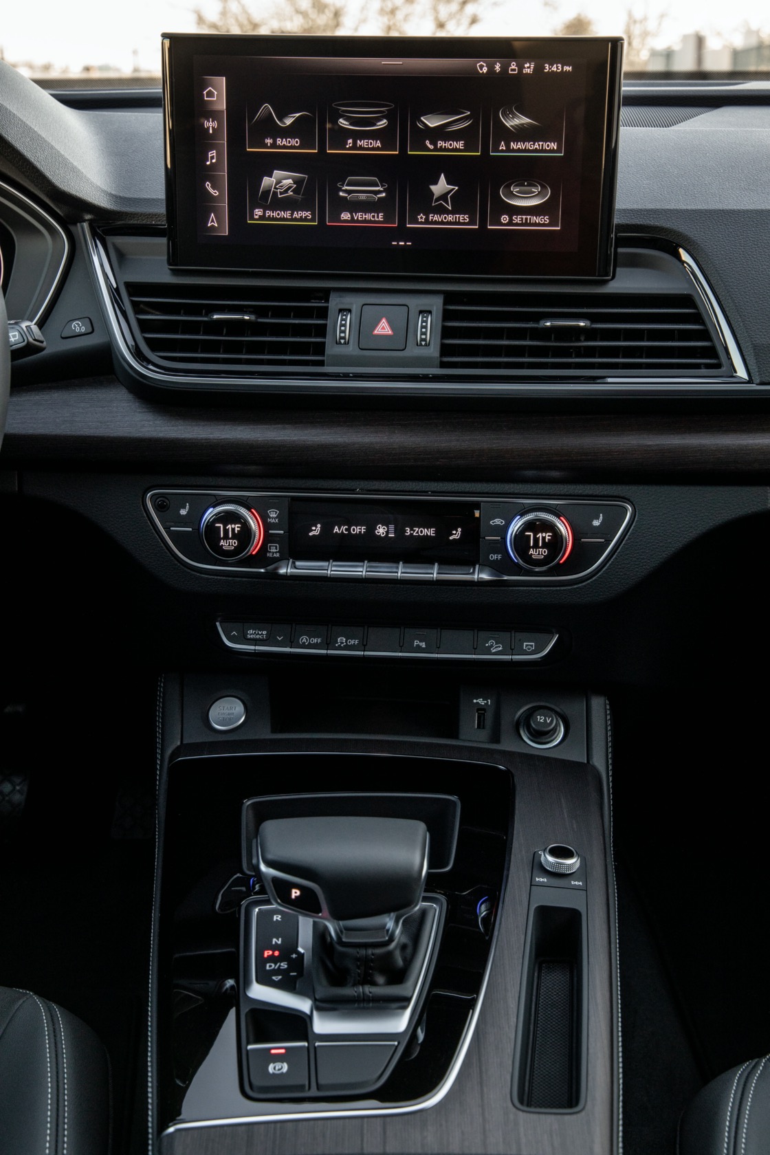 Entry-level 2021 Q5 Premium trim cars get 8-way power front seats, hill descent control, cruise control, a power tailgate, front and rear parking sensors, leather seats with heating in the front, lane departure warnings, three-zone climate control with a rear display, keyless start, an integrated toll module, rear privacy glass, and a sliding 40/20/40 split-folding second row. Its a pretty comprehensive list; Premium Plus throws in bigger wheels, adaptive cruise control, active lane assistance, a hands-on detection steering wheel which tracks contact rather than torque, a panoramic sunroof, 360-degree camera, and fancier trim to the dashboard and doors.