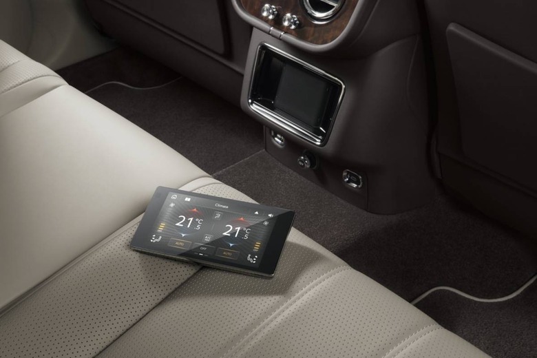 Those in the second row get a new Touch Screen Remote tablet, which pops out and offers a 5-inch interface for heating and massage, multimedia, and navigation. It can also be used to control the SUV's LED mood lighting and window blinds. The graphics have been updated, and there's now a quad core processor and 1GB of RAM inside.