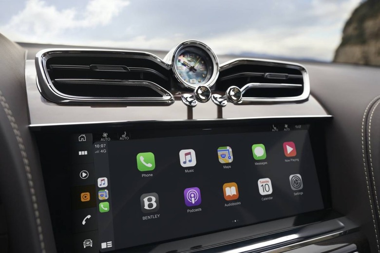 The tech upgrade is wrapped up in the sort of luxury we've come to expect from Bentley. The door trims and steering wheel are new, while the bullseye vents in the center console have been replaced by a sweeping single vent that integrates the Breitling clock. There's a new, long pocket alongside the transmission shifter, plus a wireless phone charger with signal booster.