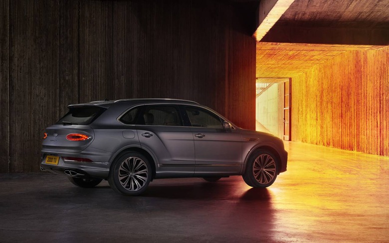 At the rear, there's a new full-width tailgate and new, elliptical lamps. They're echoed by the wide, split tailpipes. Bentley has increased the rear track width by 0.78-inches, pushing the wheels out in their arches. New 22-inch wheels are available in two finishes.