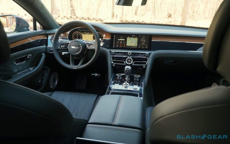 As for the inside, it's here that Bentley truly shines. When the British automaker retired the Mulsanne last year, the Flying Spur taking over as its flagship sedan, I did have some qualms about whether the lavish attention to detail heaped upon the stately four-door could translate to its newer replacement. Production of the Flying Spur is, after all, an order of magnitude higher: Bentley only made about 500 Mulsanne at most each year, spending considerably longer on the hand-finished wood, leather, and metal of their exceptionally detailed cabins.