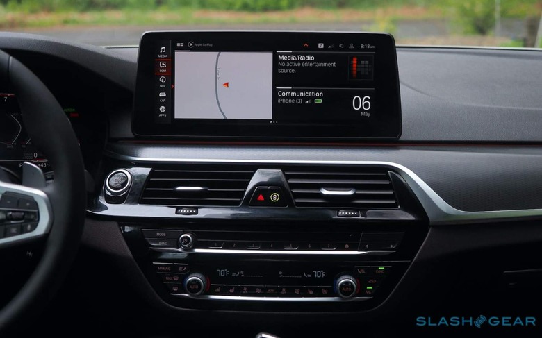 The same could be said for the cabin. Saved, by price and positioning, from the typical lashings of carbon fiber and spangles, the 540i plays it safe with more mainstream luxury. The leather seats are fulsome thrones, you get a 12.3-inch digital cluster and a matching 12.3-inch center touchscreen, and BMW doesn't stint on buttons for whose who prefer to reach out and toggle their settings that way.