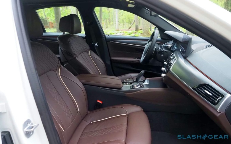It's a handsome sedan, and fairly restrained by BMW standards. No vast grille, or exaggerated creases; it's about as understated as the automaker's line-up gets. Park it next to some of the luxury upstarts aiming to take a bite out of BMW's market share and you'd be forgiven for having your head turned by the Genesis G80 or Cadillac CT5.