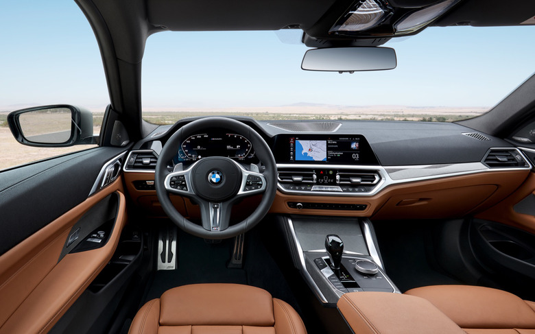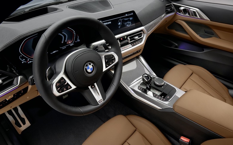 A leather-wrapped M Sport wheel with paddle shifters is standard, as is an 8.8-inch central touchscreen, an analog cluster with 5.1-inch display, 14-way power front seats, a power glass moonroof, wireless Apple CarPlay and Android Auto, and navigation. That Executive Package throws in heating for the wheel and front seats, ambient lighting, a head-up display, gesture control, and a full digital instrument cluster along with a larger 10.3-inch central screen. There's also auto climate control, WiFi hotspot, parking sensors, and keyless entry; $500 adds a wireless charging pad, and $875 upgrades to the Harman Kardon audio system.