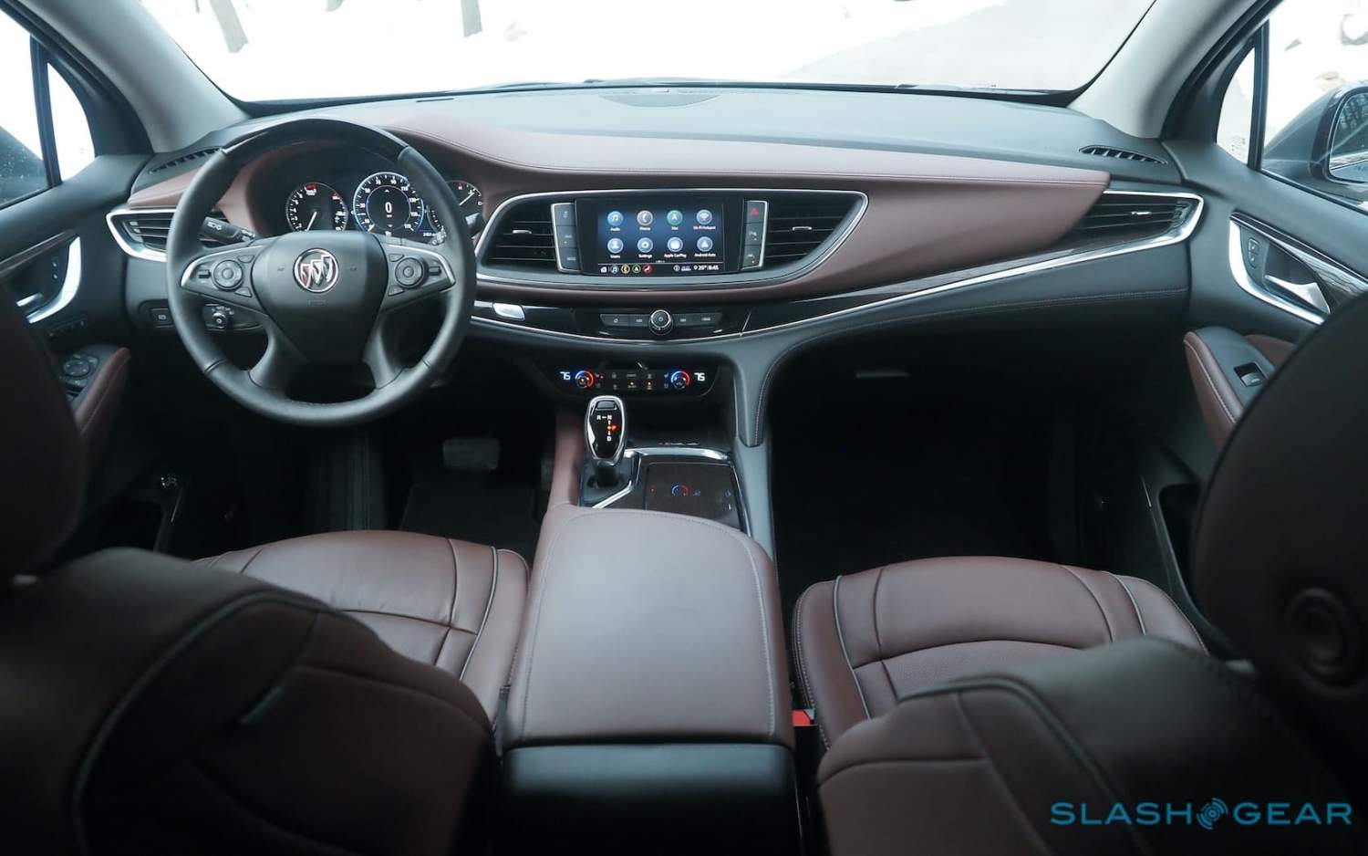 While you're doing that, you'll have time to scratch your head over some of Buick's cabin decisions. The Enclave's dashboard is fairly clean, with its sweeping lines, but the glossy wood trim doesn't feel especially premium and the switchgear wouldn't feel out of place in its Chevy sibling. It all feels solid but not really special.