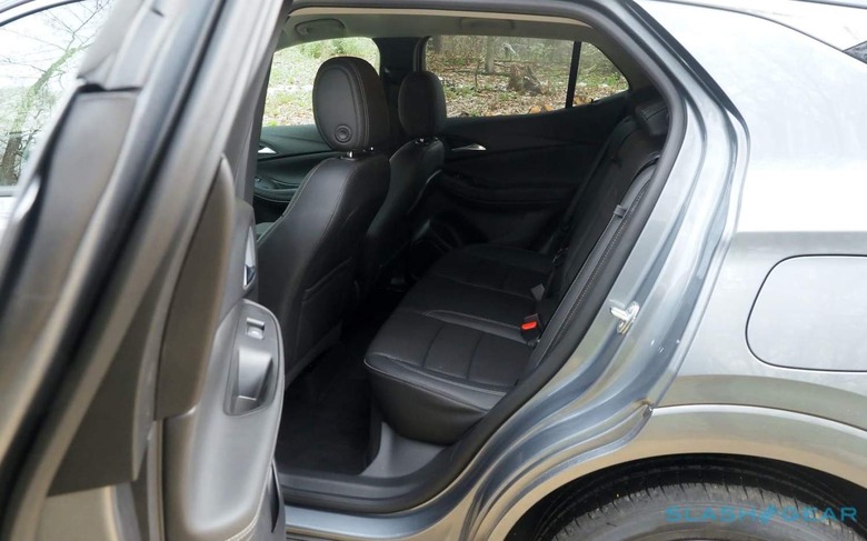 Larger than the Encore, there's more cabin space too. Rear seating is adult-friendly, both for head and leg roominess, and the 23.5 cu-ft of trunk space expands to 50.2 cu-ft with the split rear bench dropped down.