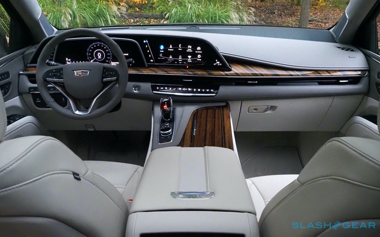 It means you get the same three-row luxury as I found in the 2021 Escalade V8, complete with its throne-like seating, huge curved OLED dashboard, and a healthy array of technology and standard safety equipment. 2WD and 4WD configurations are available, and soon you'll be able to add Enhanced Super Cruise, which I still contend no Escalade buyer should leave the dealership without.