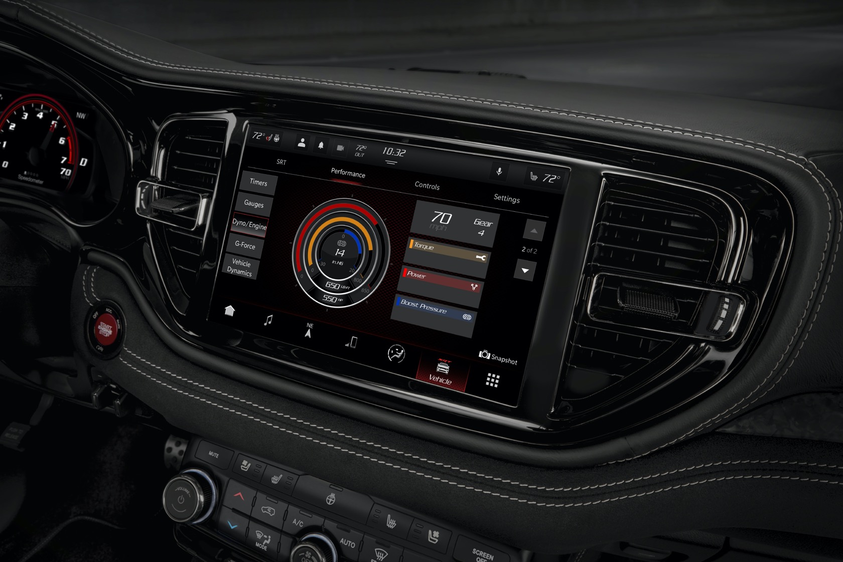 To do that, Dodge has used 18-percent stiffer rear damper top mounts, among other changes. The result is a 20-percent increase in total rebound control, the automaker says, plus 2.5-percent less understeer and more stability when headed into corners. Drive modes include Auto, Sport, and Track, along with a Custom mode which can be set with a variety of adjustments for the transmission, steering, traction control, AWD, and suspension behavior.