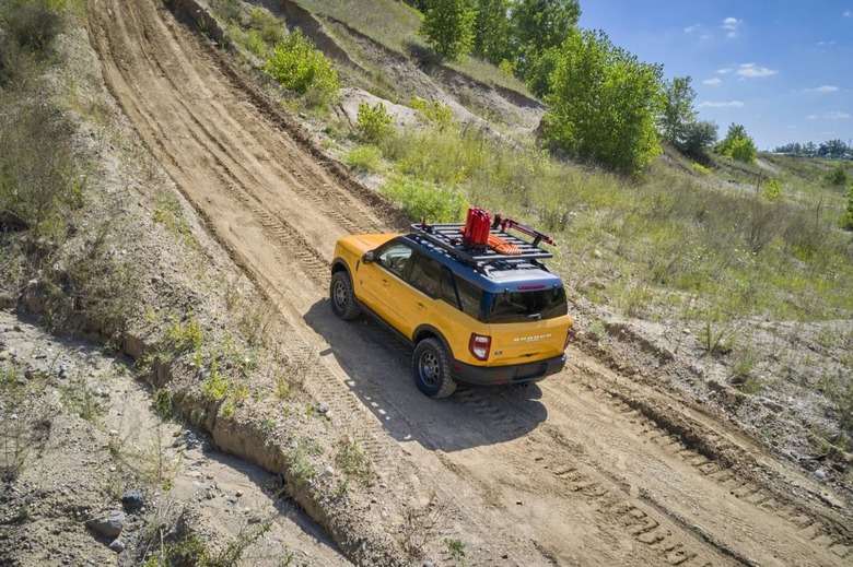 Finally, there's the Bronco Sport TOW RZR, which pairs Badlands trim with more towing and cargo accessories. Yakima HD Bar crossbars and an OffGrid medium cargo basket work alongside a Class II Trailer Tow Package that can handle up to 2,200 pounds of capacity.