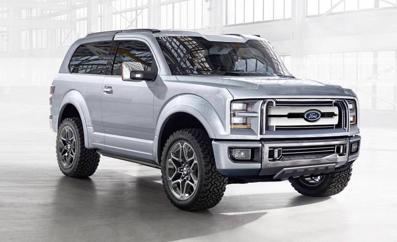 The new Bronco is expected to have removable doors, a removable roof, and a high dose of ruggedness with chunky tires, standard AWD, and tough body cladding. Also, the Bronco will be offered in two models. The standard model is based on the underpinnings and body-on-frame construction of the Ford Ranger pickup truck. It may also have the same 2.3-liter turbocharged inline-four of the Ranger, but we're pining for a larger and more powerful turbocharged V6 on higher trim models.