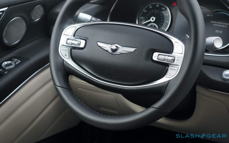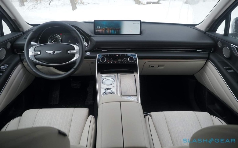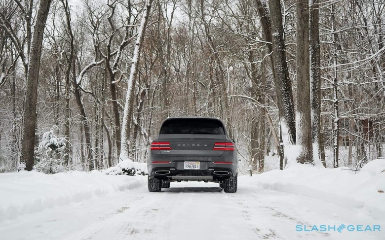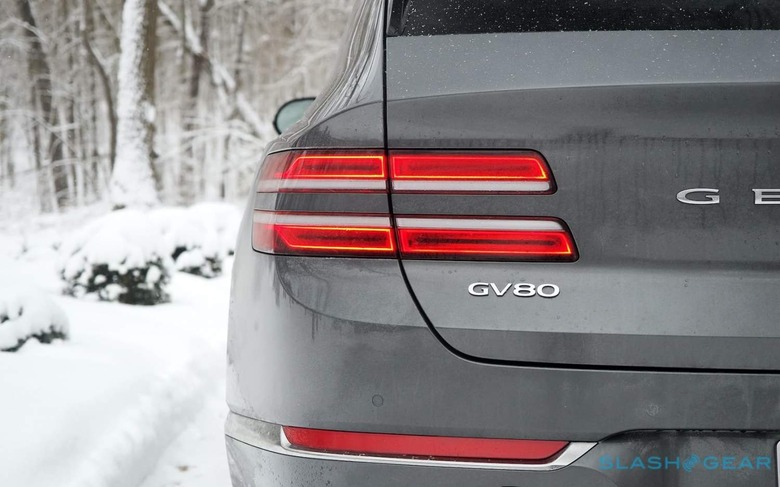 If you buy the all-wheel drive version, you get an AWD badge on the trunk so that people behind know you spent the $5,750 extra on top of the GV80 2.5T's $48,900 (plus $1,025 destination) starting price. Its absence was something I wished I'd noted as the roughly 4,600 pound luxury SUV shimmied its way to a halt at the first set of traffic lights. Even on winter-friendly rubber, things felt a little... fraught.