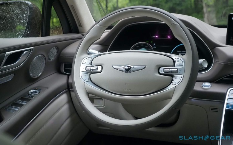 You'll probably hear that a fair amount, if you're anything like me. Big SUVs – despite the acronym – aren't typically made for eager driving, but twist the GV80's drive mode dial to Sport and it's a legitimate pleasure to drive. The rear diff helps there, as does the direct and beautifully-weighted steering, while the brakes are so firmly effective as to occasionally border on grabby until you learn how best to modulate them.