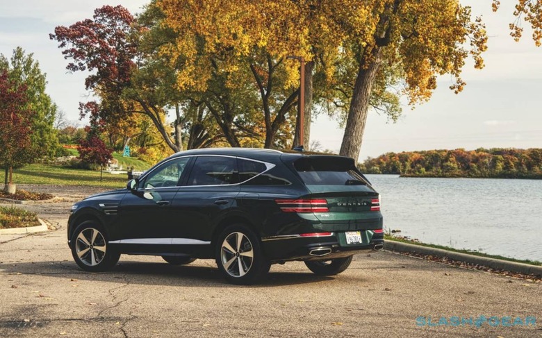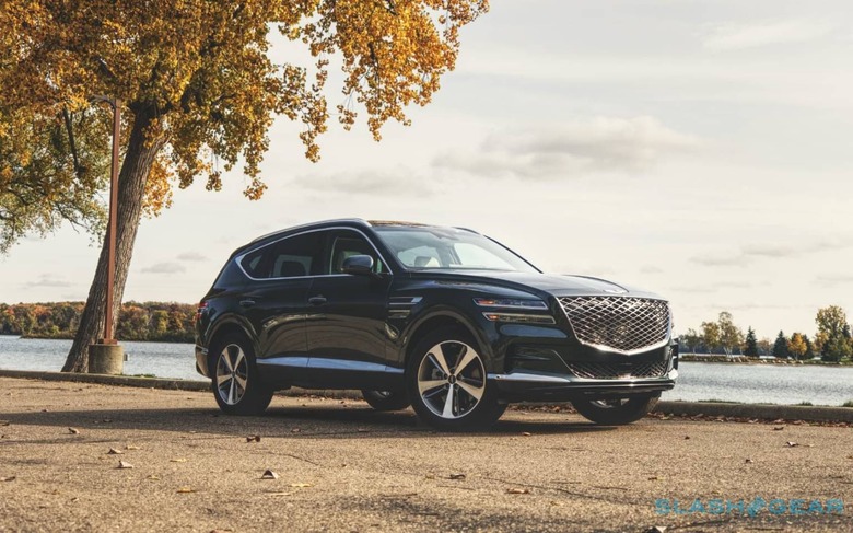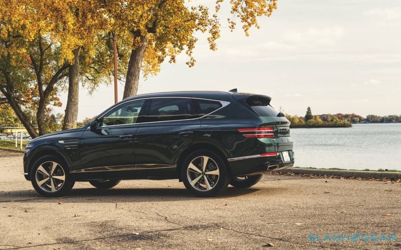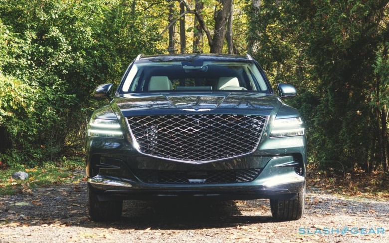 It looks natural, and fluid; as though the sculptor teased back fluted clay with their fingertips. If I've a complaint, it's that the unusual wheels we've seen Genesis offer on its recent sedans aren't available on the SUV. From the 19-inch alloys standard on the 2.5T RWD, the 20-inch upgrades in that model's Prestige package, or the largest 22-inch examples on the 3.5T AWD Prestige, the 5-spokes lack the same melodrama.