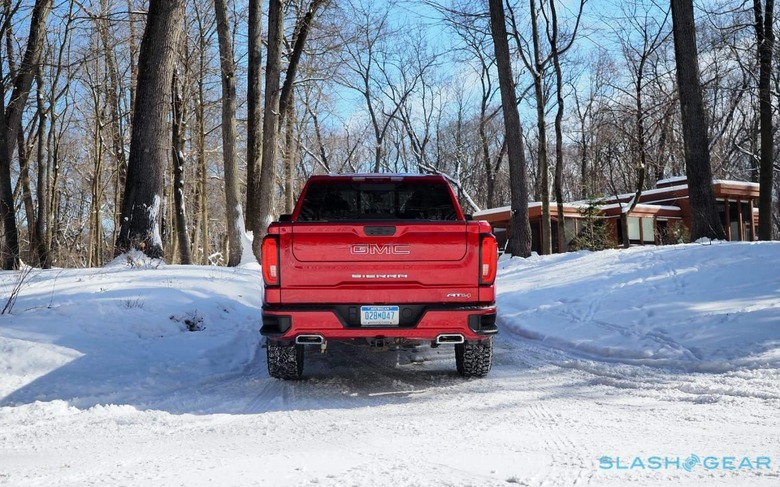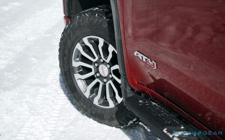 Helping garner me trucker attention was the AT4's 2-inch lift and X31 suspension; there's also an auto-locking rear differential and a two-speed Autotrac transfer case that works with the optional 4WD. 18-inch machined aluminum wheels wear beefy Goodyear Wrangler Territory all-terrain rubber. Denali models can be had with adaptive suspension, but such niceties aren't offered on the AT4.