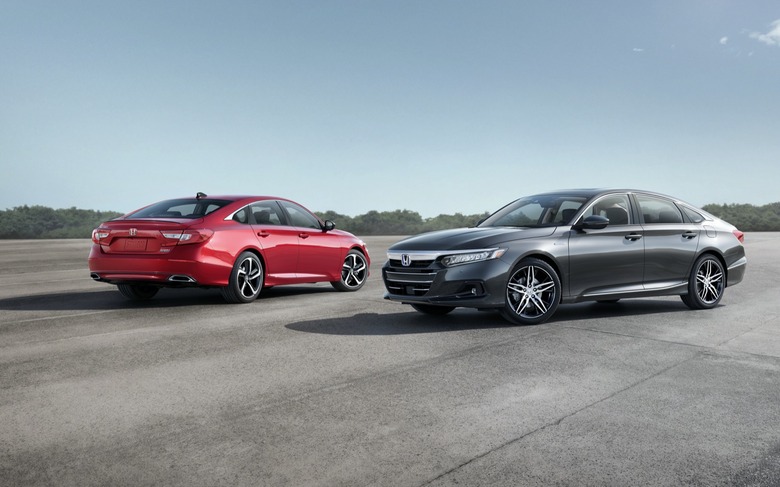 The 2021 Accord LX kicks off at $24,770 (plus $995 destination) for the 1.5-liter turbocharged engine (192 hp / 192 lb-ft) and CVT. The Sport starts at $27,230, the Sport SE at $28,720, and the EX-L at $31,090. The Accord Sport 2.0T upgrades to Honda's 2.0-liter turbo engine (212 hp / 232 lb-ft) and a 10-speed automatic, and starts at $31,910, while the Accord Touring is $36,700.