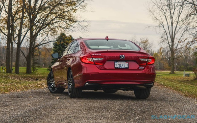 The big news here is the drivetrain. The Accord Hybrid uses the latest iteration of what Honda calls its "two-motor hybrid" system: a 2.0-liter Atkinson-cycle inline-4 gas engine combined with an electric motor and a li-ion battery. Since it's not a plug-in hybrid there's no way to externally charge that battery: instead, it soaks up spare power from the gas engine, or the power recovered through regenerative braking when the sedan slows down.