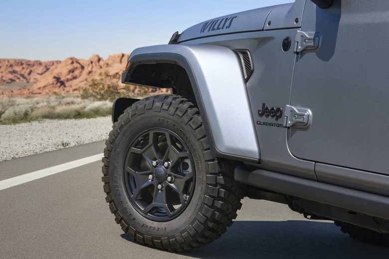 As for the inside, what you get will depend on the origin vehicle. The Willys option will be offered on the Gladiator Sport and Sport S, both of which will get special all-weather slush mats. The Sport S Willys will add the Technology Group package, which has a 7-inch infotainment touchscreen and connected services, along with the Convenience Group.