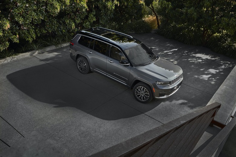 Initially, there'll be two engines to choose between. The standard drivetrain will be a 3.6-liter Pentastar V6 with an eight-speed automatic, across the Laredo, Limited, Overland, and Summit trims. It gets 290 horsepower and 257 lb-ft of torque and is rated to tow 6,200 pounds. Overland and Summit versions will be able to upgrade to the 5.7-liter V8 with the same transmission, for 357 hp, 390 lb-ft of torque, and 7,200 pounds of towing.