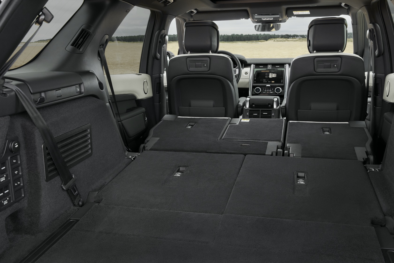It's not the only new, practical feature. An optional hands-free Gesture Tailgate opens when you wag your foot under the rear bumper, and there's up to 74.3 cubic feet of cargo space with the second and third rows folded. With all seven seats up, you get 9.1 cubic feet. The seats themselves can be remotely stowed or popped up via the Pivi Pro touchscreen, and the lower tailgate is sturdy enough to support more than 660 pounds of weight. Instead of a key, the second-generation Land Rover Activity Key has a touchscreen and acts as a watch now, and can lock, unlock, and start the 2021 Discovery.