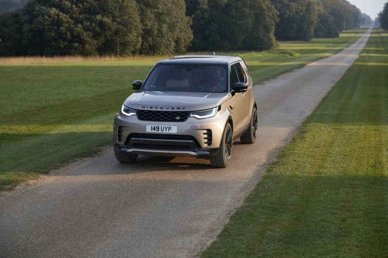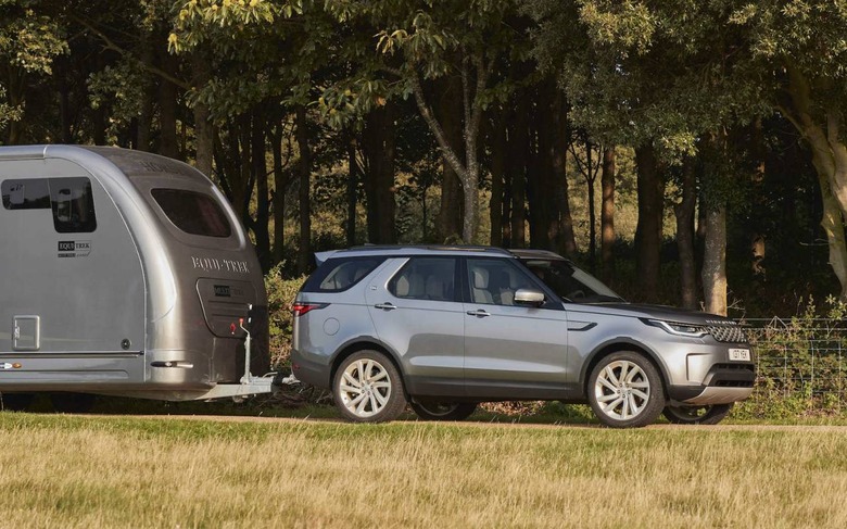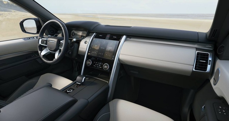 Either way, air suspension is standard – with 115mm of possible adjustment – as is the Land Rover Terrain Response 2 system with multiple drive modes. There's a new Wade Mode, which can deal with up to 900mm of water. Towing capacity is up to 8,200 pounds, the automaker says, and there's an available powered rear tow bar and Advanced Tow Assist. ClearSight Ground View is available too, using a front camera to give a view "through" the Discovery's hood on the infotainment screen.