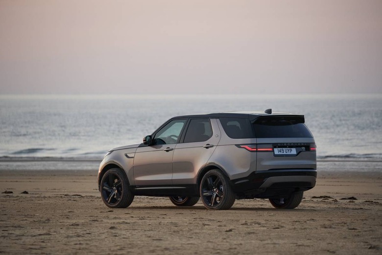 There's a new lower front bumper, with an integrated body-color graphic, intended to visually lower the SUV's stance, and that's echoed at the rear with a new lower rear bumper too. New LED rear lamps wrap around the fenders, while a new black panel connects them across the split tailgate; that panel is the new home for the Discovery badging, too. Opt for the R-Dynamic package – a first for the Discovery – and you get gloss black accents on the lower door claddings, the wheel arch moldings, and the roof, along with on the grille.