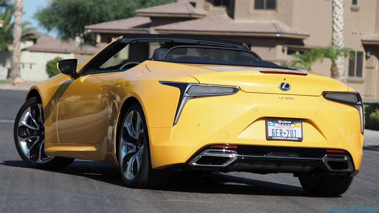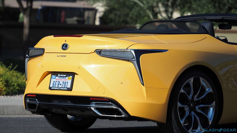 The convertible also receives a lighter set of 20-inch cast-alloy wheels, but the 20- and 21-inch forged rollers remain optional. You don't get a spare tire in the LC Convertible, with run-flat tires standard instead. It allows the engineers to shorten the rear overhang while further reducing weight. Additionally, the soft top is composed of lightweight aluminum and magnesium components.
