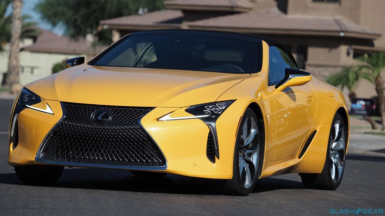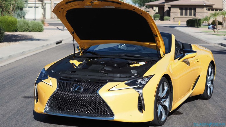 For a start, adding a power-folding soft top means some weight reduction elsewhere is in order. That's why the convertible model gets aluminum suspension components, helping to reduce unsprung weight. Remember, we're talking about a grand tourer and not a track-focused sports car, but the weight reduction measures are definitely welcome considering the LC 500 coupe tips the scales at roughly 4,300 pounds.