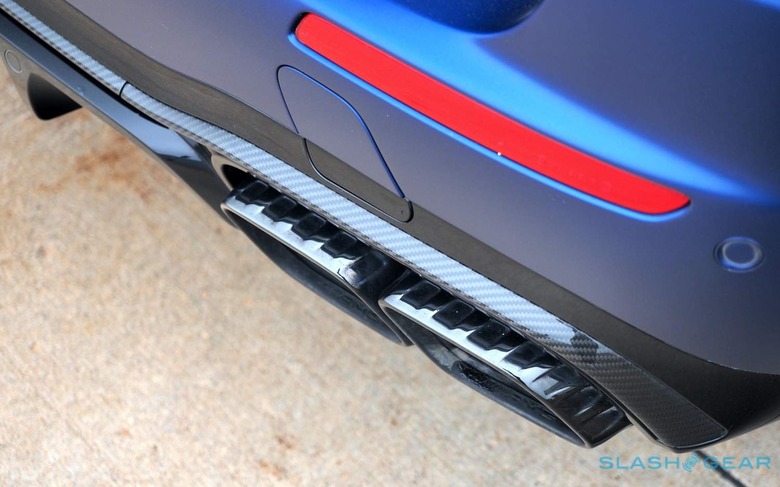 $3,950 adds the glorious Brilliant Blue Magno paint, a stunning matte finish which will have you suspiciously glaring at every bird or overhanging tree. $8,950 swaps the standard high-performance composite brakes for carbon-ceramic versions; $2,000 adds the 20-inch forged cross-spoke wheels. $1,750 throws on lashings of exterior carbon fiber, $900 adds more advanced LED lights, $750 swaps the chrome for gloss-black trim pieces, and $450 dark-tints the grille.
