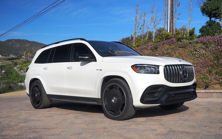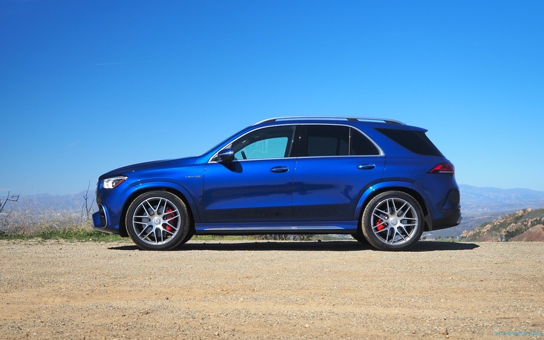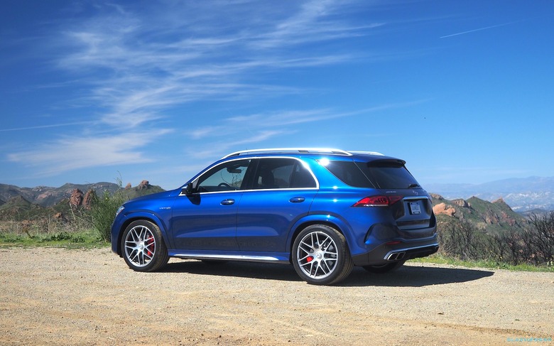 Specifically, it's a 4.0-liter V8 biturbo which uses Mercedes' EQ Boost system. Assembled according to AMG's "one man, one engine" principle, it delivers 603 hp and 627 lb-ft of torque. In the case of the three-row GLS 63 that means 0-60 mph in 4.1 seconds. The slightly lighter GLE 63 S trims that down to a faintly-ridiculous 3.7 seconds.