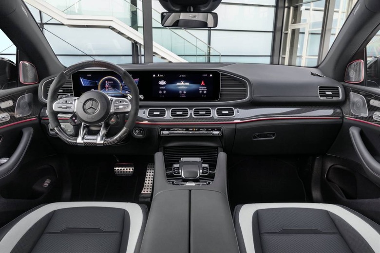 EQ Boost – which is based around a 48V electric starter-generator – contributes up to 184 lb-ft of that torque, and helps the SUV coupe hit up to 174 mph. 0-60 mph arrives in 3.7 seconds. AMG Performance 4MATIC+ all-wheel drive is standard, as is an AMG SPEEDSHIFT TCT 9-speed automatic transmission.