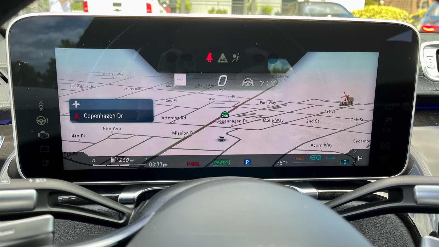 Unsurprisingly, Mercedes' options list is long and varied. There are $1,950 21" AMG V-Multispoke wheels with black inlays, $1,300 4.5-degree rear-axle steering, a $250 heated steering wheel, and my favorite option – the 3D Technology package. In return for your $3,000, you get the MBUX augmented reality head-up display and 3D instrument cluster.