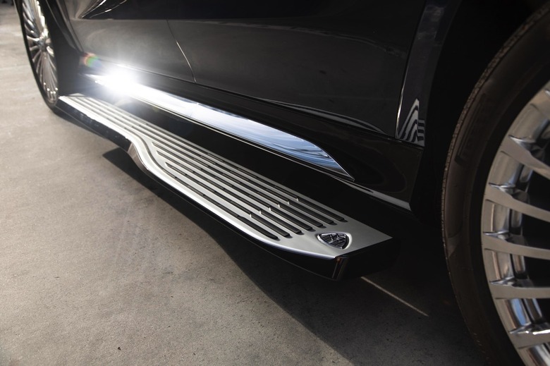 Attention to detail is key, here, and little exemplifies that like the electrically-operated running boards. Standard on the Maybach GLS, they each measure 6.8 feet and run the side sills' full length. The anodized aluminum steps have black rubber strips to offer a surefooted grip, and each running board brandishes a chrome Mercedes-Maybach emblem.